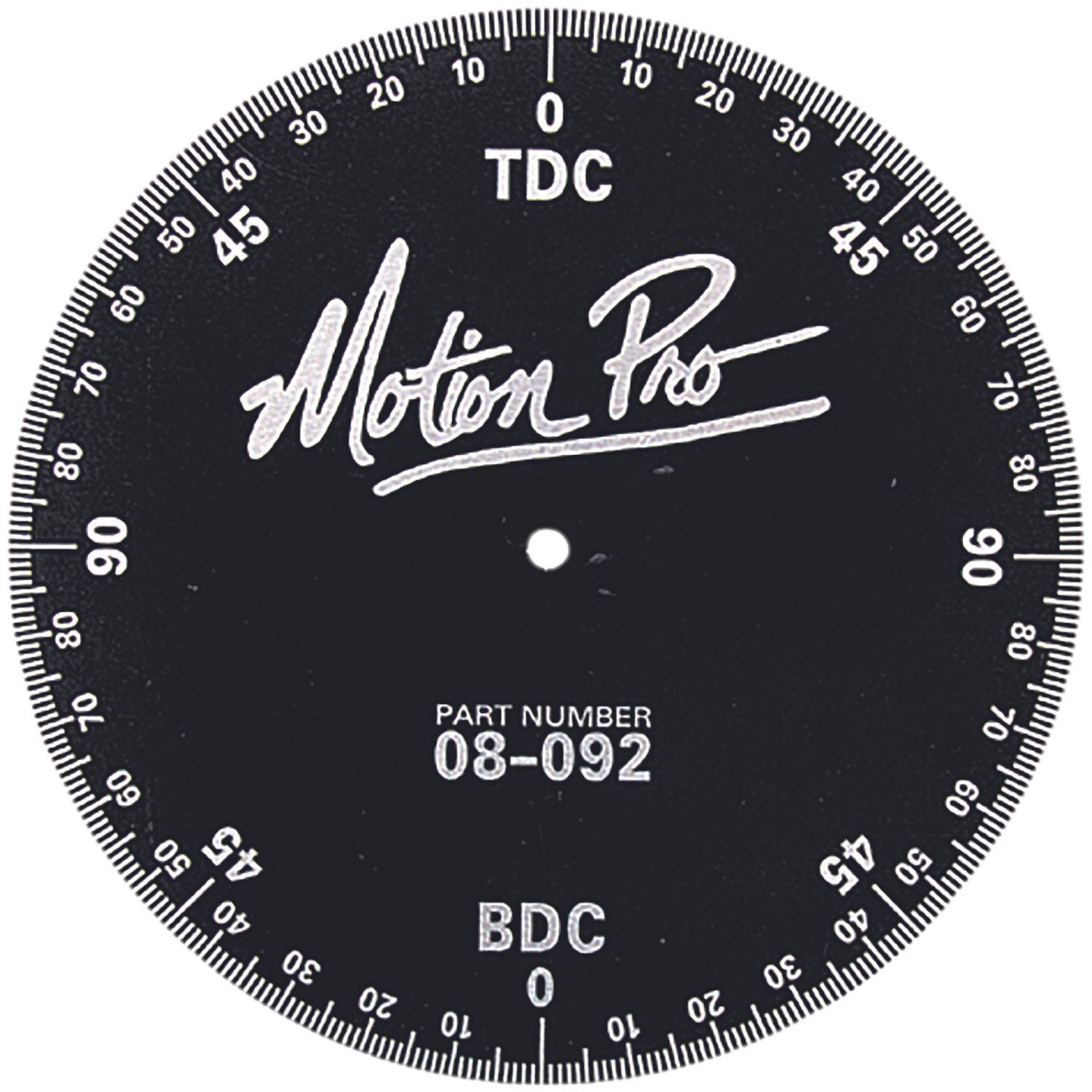 Manufactured from .052″ thick with a 6¾” outside diameter and a 6mm center hole. The black anodized finish allows for easy to read increments. This degree wheel can be used on all 2 cycle engines to check or setup the port timing or ignition timing. May be used on 4 cycle engines to check or adjust cam timing or ignition timing.