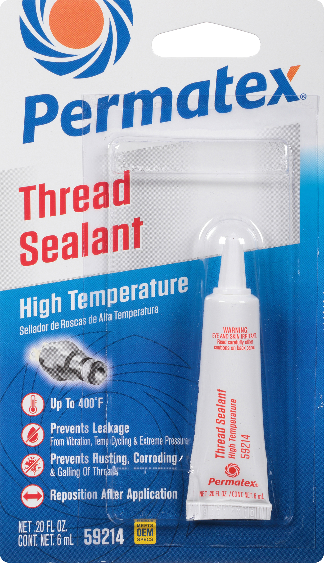 Locks and seal threaded fittings Great for fuel, cooling and hydraulic fittings Resists leakage, vibration loosening and moisture Won’t shred or wear like thread sealing tape Temperature range -65° F to 400° F